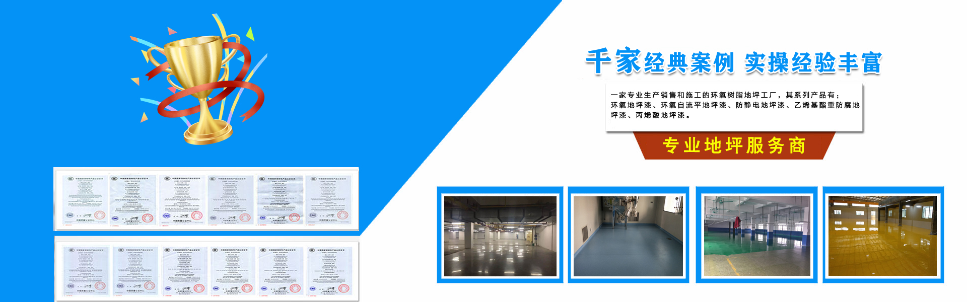 易固潤(rùn)專(zhuān)注地坪工程一條龍服務(wù)東莞市易固潤(rùn)地坪有限公司是一家專(zhuān)業(yè)生產(chǎn)銷(xiāo)售和施工的環(huán)氧樹(shù)脂地坪工廠(chǎng),公司通過(guò)ISO-9001質(zhì)量體系認(rèn)證企業(yè)。公司一直以"專(zhuān)業(yè)、創(chuàng)新、發(fā)展"為企業(yè)精神,秉承一流產(chǎn)品、一流技術(shù)、一流工程的高品質(zhì)觀(guān),憑著敬業(yè)的精神,經(jīng)過(guò)十多年的沉淀和研究,使公司的團(tuán)隊(duì)更加完善,技術(shù)更加過(guò)硬,迅速崛起,成為全國(guó)生產(chǎn)地坪漆的知名企業(yè)。
